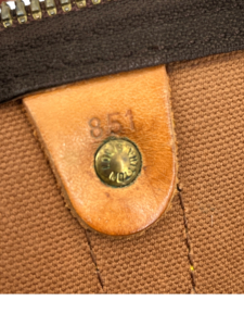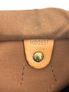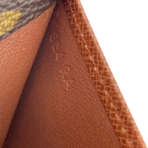 Man muss etwas genauer hinschauen. Die Prägung findet sich oft in Ecken, an Kanten oder auf Laschen – sie wurde mit einem Metallstempel ins Leder oder Futter gedrückt. Bei älteren Taschen können einzelne Zahlen schwer zu entziffern sein. Falls dies der Fall ist, lässt sich die Zahl zunächst schätzen und dann verschiedene Code-Varianten im Datums-Checker eingeben. Alternativ kann es helfen, ein Foto des Codes zu machen und dieses anschließend zu vergrößern. Hier sind einige Beispiele: